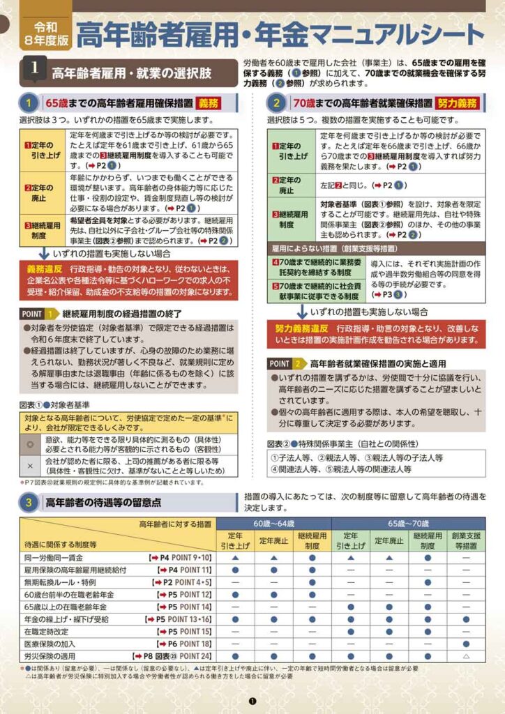 令和8年4月以降に施行される年金制度改正の内容について、高年齢者雇用の観点から押さえておくべきポイントを整理したマニュアルシートです。