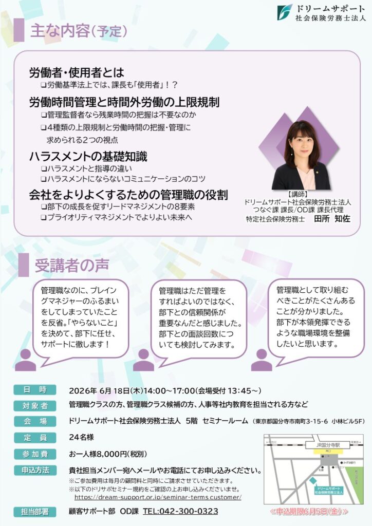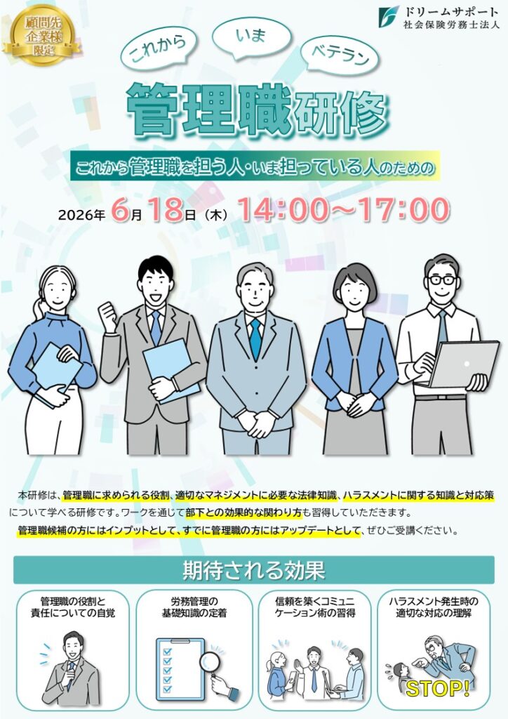 管理職候補の方にはインプットとして、すでに管理職の方にはアップデートとして、ぜひご受講ください。