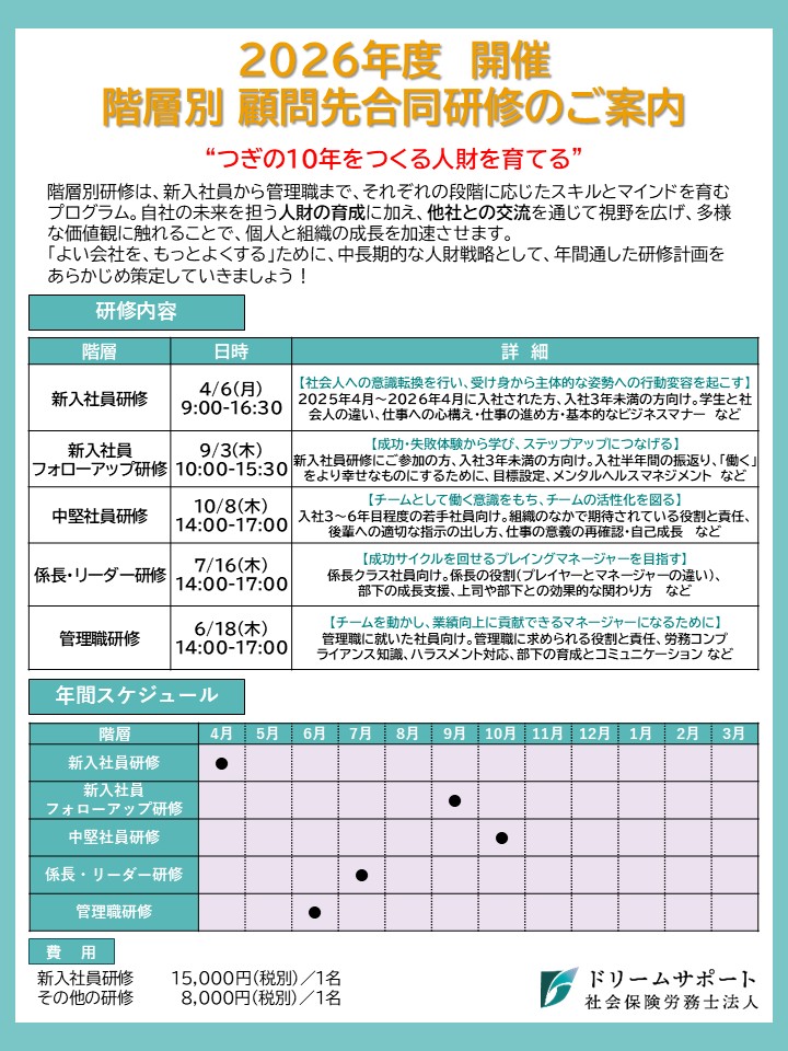 「よい会社を、もっとよくする」ために、中長期的な人財戦略として、年間通した研修計画をあらかじめ策定していきましょう!